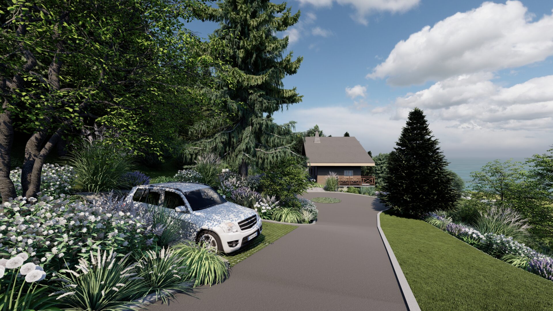Ce projet s’inscrit dans un paysage d’exception, où la vue sur le lac devient le fil conducteur de l’aménagement. L’intervention vise à révéler pleinement ce panorama en structurant les espaces extérieurs en terrasses successives, épousant naturellement la pente du terrain.