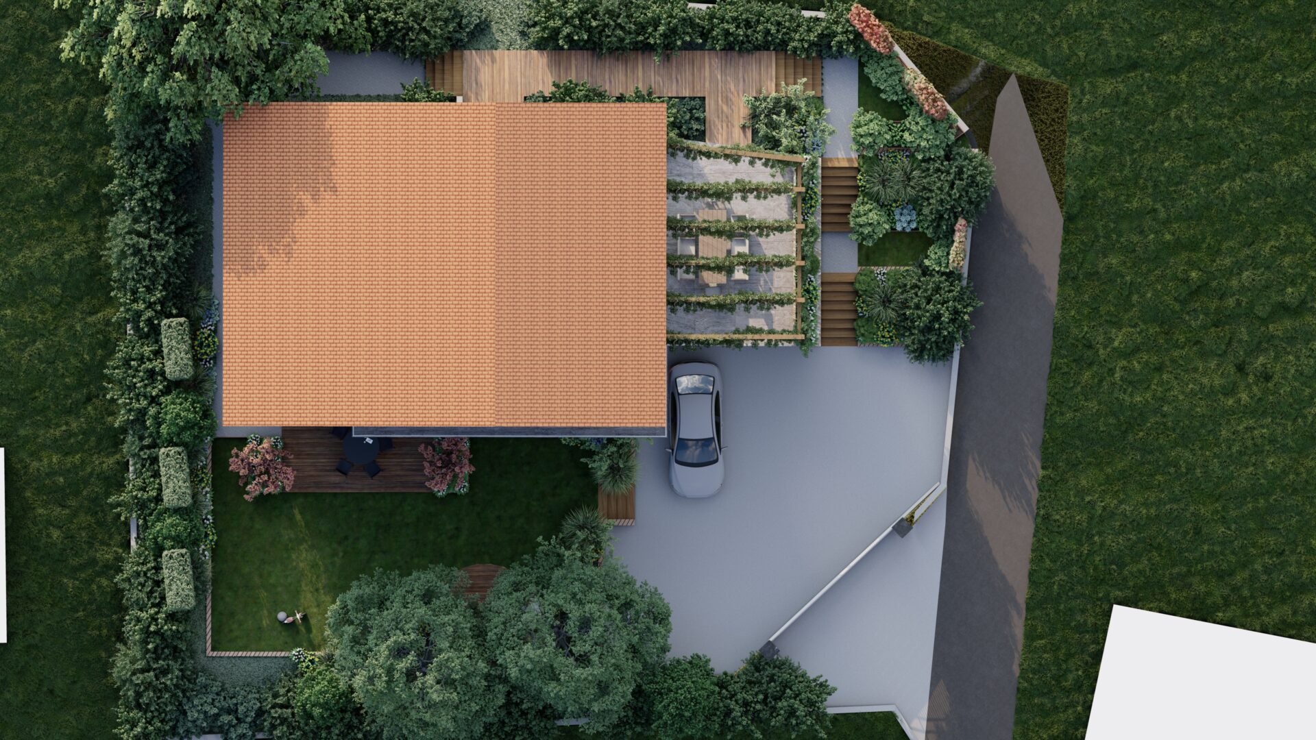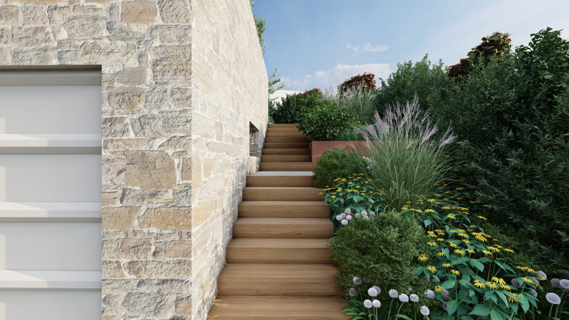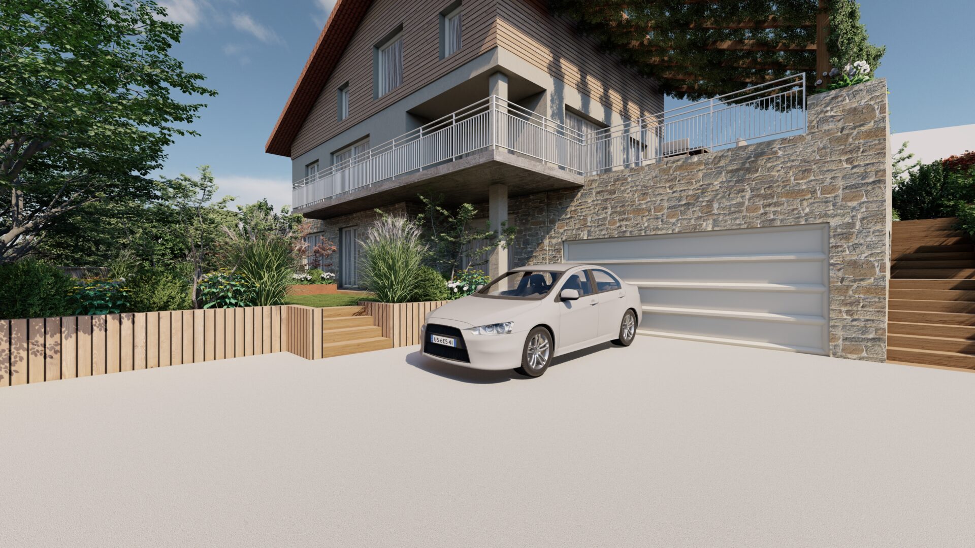Le projet s’appuie sur une lecture fine de la topographie pour organiser les extérieurs en une succession de paliers imbriqués. L’accès, traité avec une sobriété minérale, marque une transition nette vers la richesse végétale qui se dévoile au fil de la déambulation.